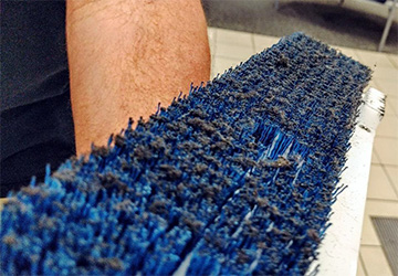 Używana na sucho szczotka do bieżnika Tread Brush rozdrabnia i zbiera brud oraz kurz.